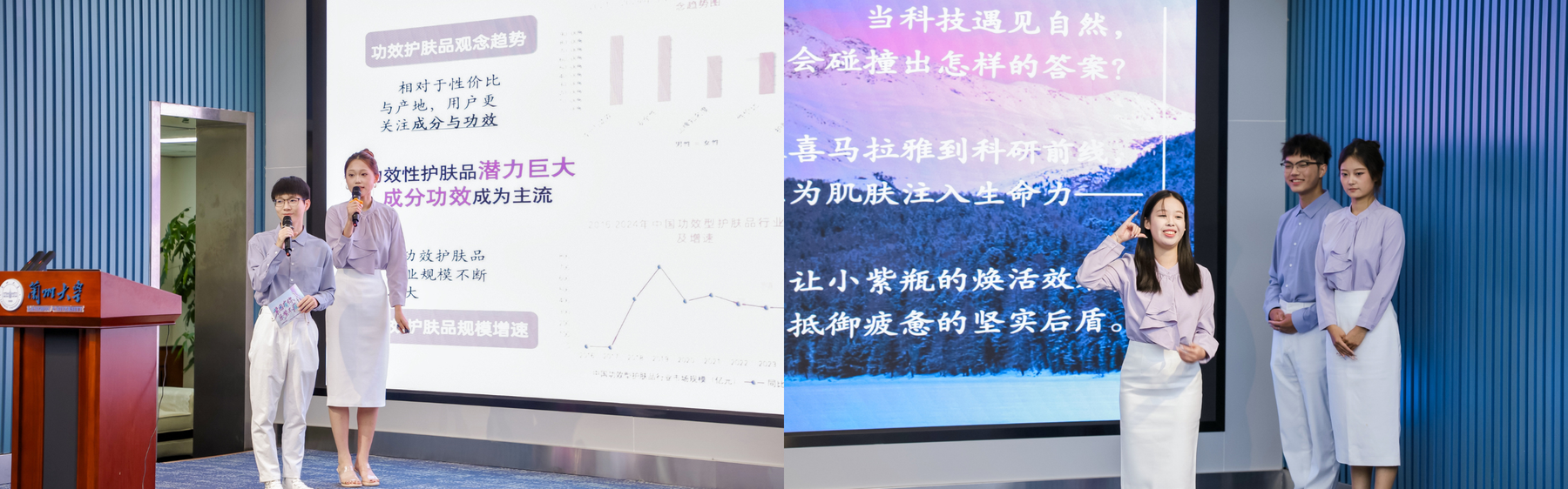 团队围绕自然堂“春夏针对 Z 世代群体‘全场景防晒系列’”选题展开策划,从公共关系的专业视角出发,创新性加入情景演绎环节,还原 Z 世代在日常通勤、户外运动、旅游打卡等场景下的防晒需求,将方案中的“全场景传播”策略具象化呈现,让抽象的公关逻辑变得直观易懂。这既展现了团队对公关关系策划的深刻理解,又增强了汇报阐述的感染力与记忆点。此方案成熟度高、公关思维突出、逻辑框架清晰的优势,搭配情景演绎的巧思设计,收获评委高度认可。