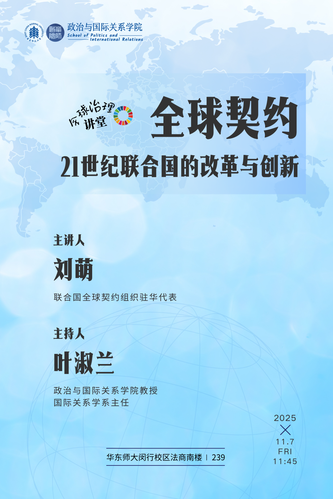 【预告】全球治理讲堂|刘萌:全球契约——21世纪联合国的改革与创新 华东师大政院 华东师大政治与国际关系学院