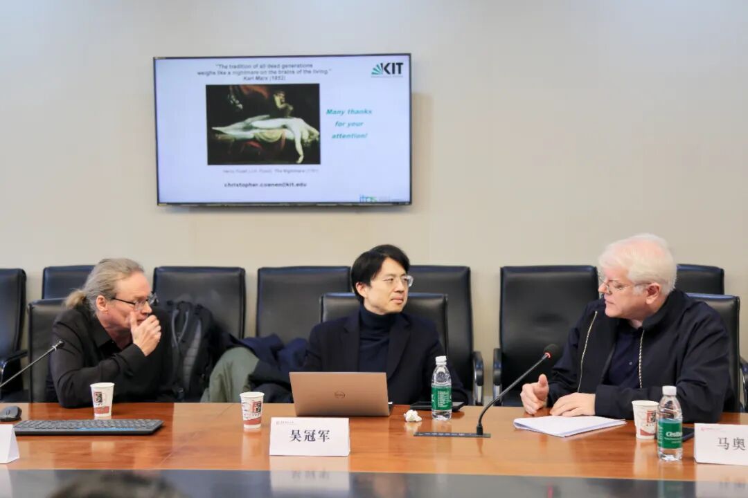 11月28日上午,华东师范大学2025年百场校级学术讲座暨奇点讲坛第12期以“超人类主义的社会主义根源及其对奇点概念的意义”为题,在普陀校区理科大楼A416会议室顺利举行。本次讲座由华东师范大学政治与国际关系学院院长吴冠军教授主持,德国卡尔斯鲁厄理工学院资深研究员、《纳米伦理》主编克里斯托弗·柯能(Christopher Coenen)主讲,政治与国际关系学院马奥尼教授与奇点研究院青年研究员康莱德·汉密尔顿作为评论嘉宾出席。
