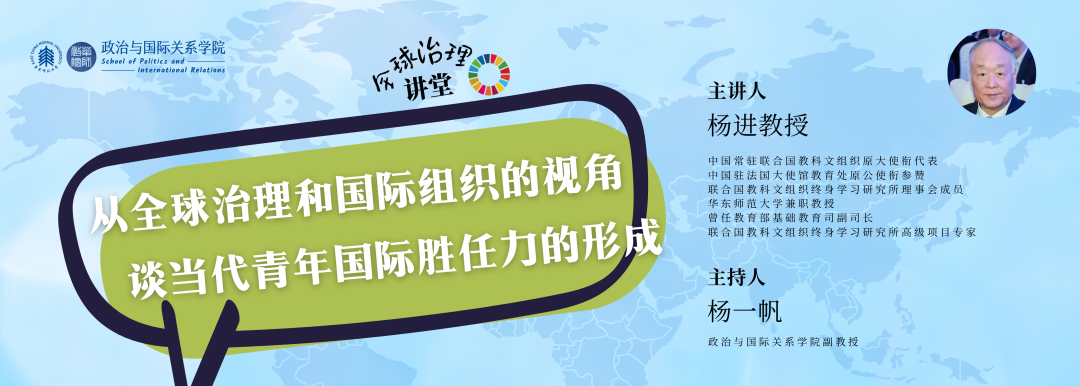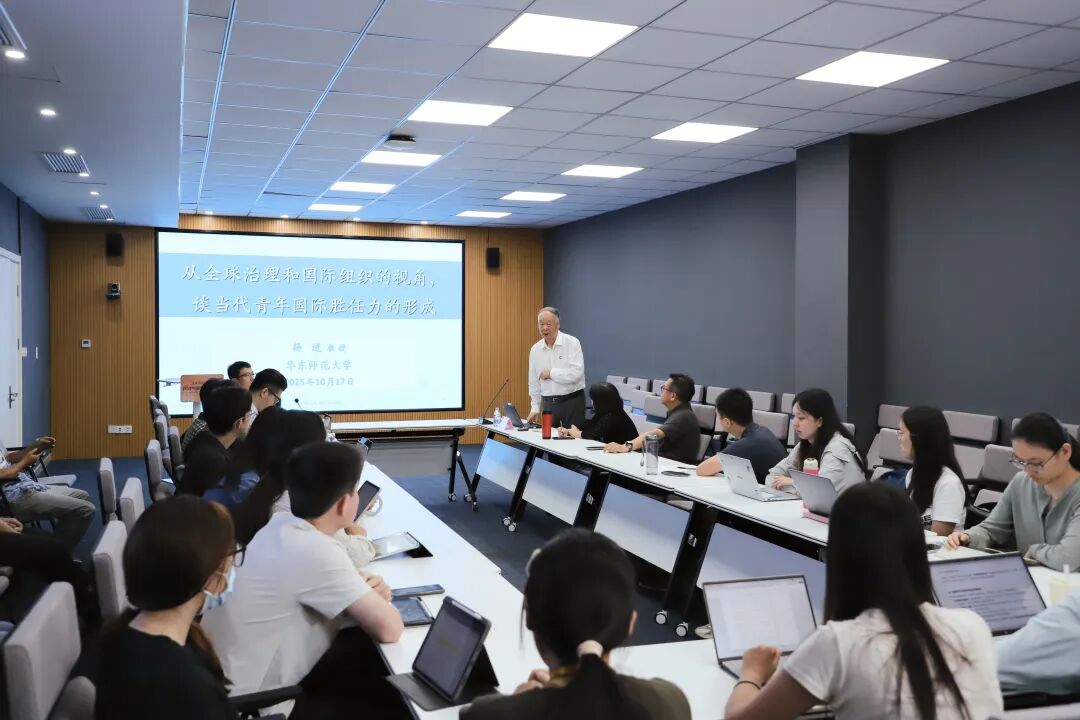 10月17 日下午法商南楼228会议室,杨进教授受邀为华东师大国际事务专业硕士项目同学带来 “从全球治理和国际组织的视角谈当代青年国际胜任力的形成”的主题讲座,此讲座也吸引了众多其他专业的同学参与。杨进教授曾任中国常驻联合国教科文组织原大使衔代表、中国驻法国大使馆教育处原公使衔参赞,现为联合国教科文组织终身学习研究所理事会成员、华东师范大学兼职教授。政治与国际关系学院杨一帆副教授作为主持人代表学院对杨进教授支持我院国际事务专硕培养表示感谢,并期望通过“全球治理”系列讲座,助力青年学子把握全球治理趋势,明确国际胜任力培养方向,为参与国际事务奠定基础。