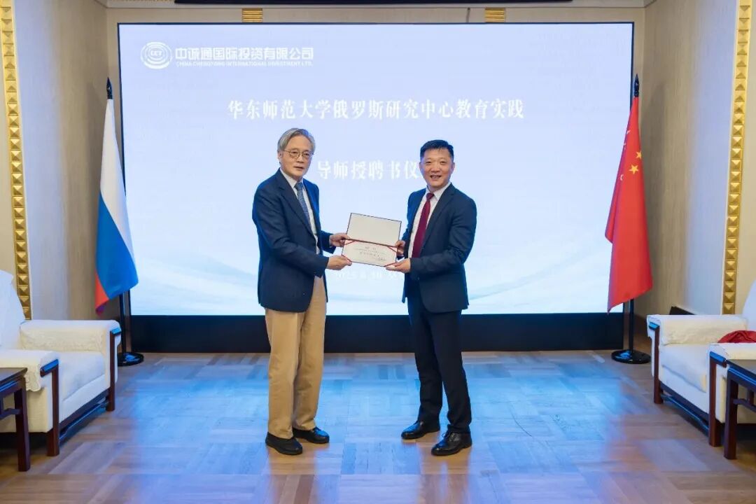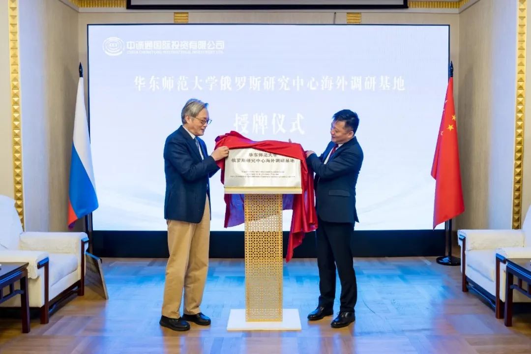 2025年6月30日下午,华东师范大学俄罗斯研究中心海外调研基地、莫斯科格林伍德国际贸易中心-华东师范大学俄罗斯研究中心教育实践基地授牌仪式在莫斯科格林伍德国际贸易中心举行。中国诚通国际投资有限公司党委书记、董事长孙伯辉,党委委员、纪委书记‌龚仁伟,总经理办公室主任宾欣、战略投资部负责人付艳洁,华东师范大学俄罗斯研究中心主任冯绍雷、副主任张昕,俄罗斯与欧亚研究院院长曲文轶、政治与国际关系学院党委副书记鲁静参加仪式并座谈。