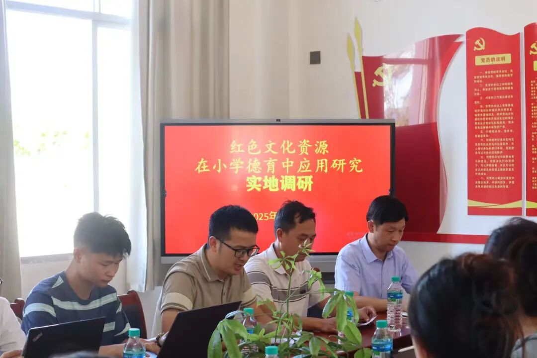 德育主任黄老师向我们系统介绍了将红色文化融入教学生活的具体实践, “学校将红色文化作为学校德育的重要组成部分,让红色文化上墙、立地,推进红色文化走廊工程,营造主旋律鲜明的校园环境,同时把红色文化融入诗词文化、体育等教学课程之中,开展红色诗歌朗诵比赛、课间活动集体朗诵活动,以润物细无声的方式,让红色文化在小学生心中扎根、发芽。此外,还努力开展行走的思政课主题活动,借助本地红色资源,组织同学们赴梓坑村留守红军旧址实地观察,切实感受具象的红色文化。”